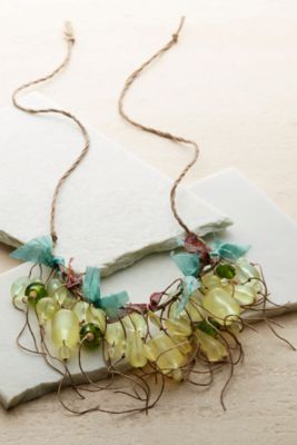 The Fresca Necklace: Multi-textured, whimsical, fresh and fun. This piece is made of glass, beads and silky bows. So unique!